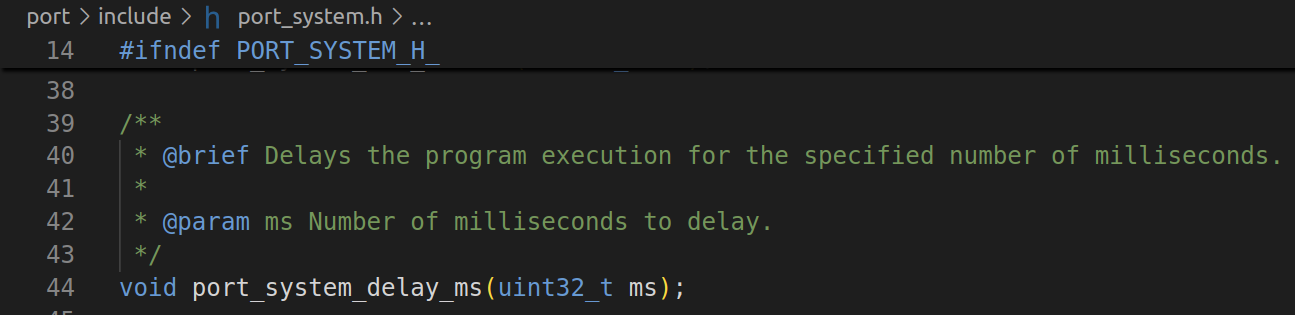 port_system_delay_ms()sí podría acceder a la variablemsTicksdirectamente, aunque con llamada aport_system_get_millis()es más ortodoxo y así es como lo harían, inevitablemente, funciones de otros ficheros. ↩ -
