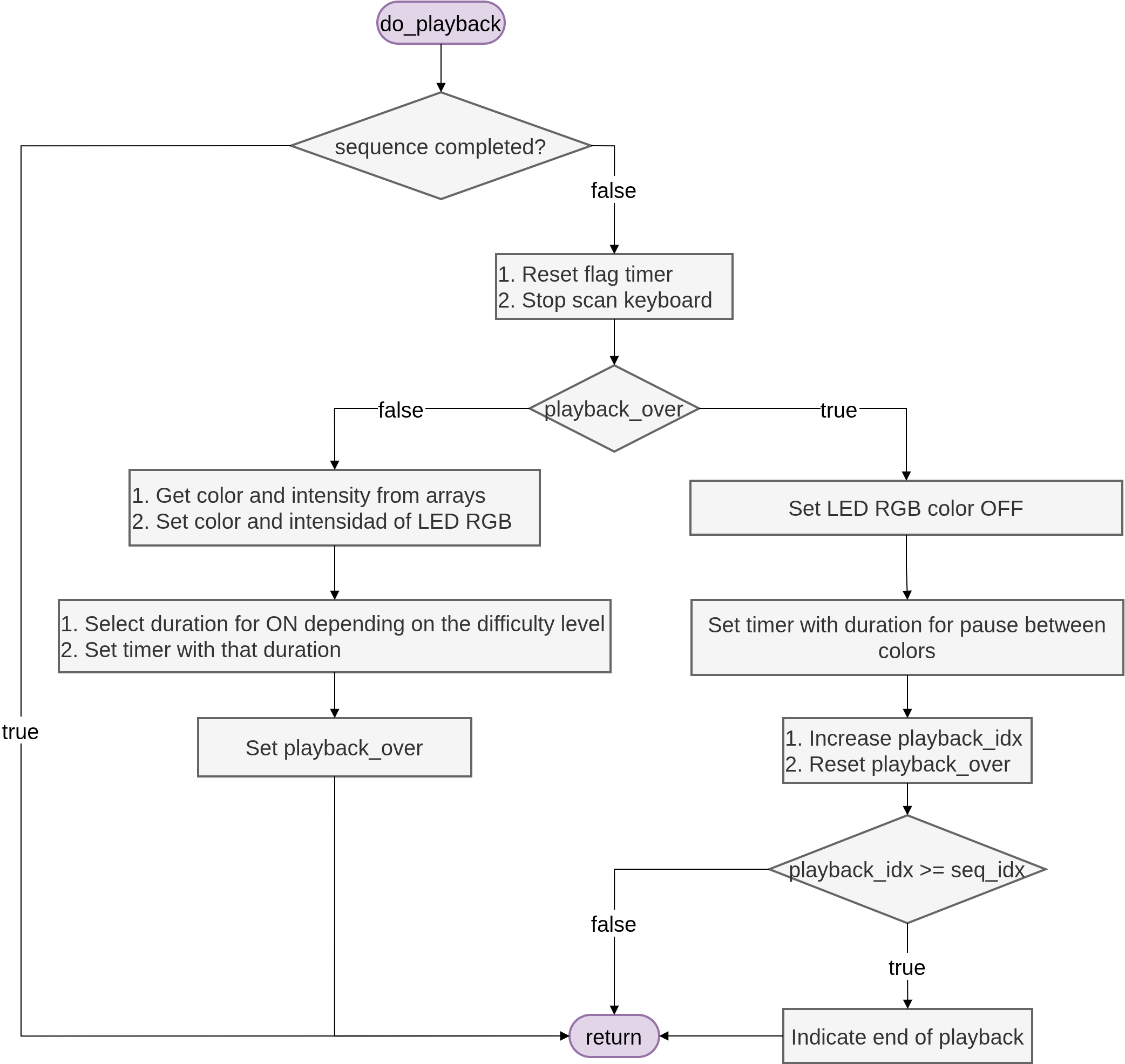 La función de acción asociada es do_playback(). Esta transición devuelve al sistema al estado PLAYBACK, ejecutando inmediatamente la lógica de alternancia de luces (encender/apagar) descrita en el flujograma de dicho estado.